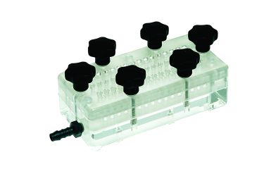 Four different sample number size and style of Hybridization Manifold are offered:- two types of dot blotter and two types of slot blotter. Typical applications include clone screening with DNA / RNA probes in Southern / Northern blots and immunological screening with antibodies in western blots. The units incorporate precision lapped surfaces to ensure uniform blotting membrane contact and a leak proof gasket. These prevent lateral transfer of samples – smudging – by ensuring that a complete vacuum is formed. Six thumbscrews ensure even and tight sealing for fast sample suck down. Dot blotters are available in 48 and 96 well versions and slot blotters in 24 and 48 well.