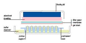 Principle: Through capillary action, the buffer travels from the reservoir to the absorbent toweling via the porous supports, permanent wick, gel and membrane. This action optimizes the transfer of low and high Molecular Weight DNA/RNA from gel to membrane without mechanical damage to even the thinnest of gels.