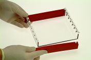 Trays are UV transparent . White PVC platform cover and red loading guides can be optionally applied to enhance well visibility. Gel trays are free of indentations or casting gate channels which can interfere with sample progression.
