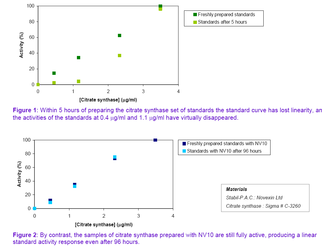 assay. The addition of Stabil-P.A.C. NV10 to enzyme or protein standard stocks