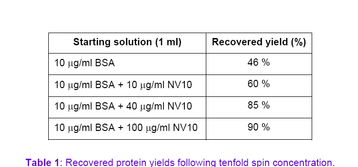spin, and the recovered protein content was measured using Novexin’s Bradford